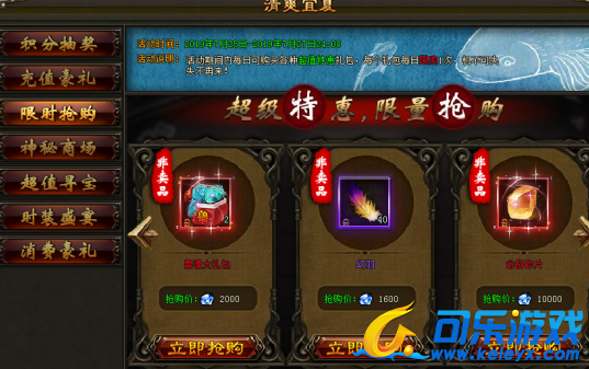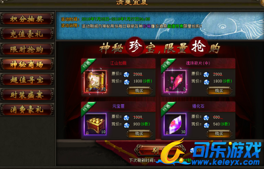 2. 活动期间内,神秘商场每日刷新各种珍稀道具,打折出售限量抢购。