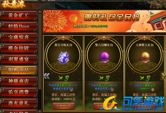 1.活动期间,玩家可在活动面板购买限购商品;(可翻页)