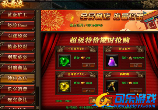1.活动期间,玩家可在神秘商店中购买商品,商品可用金币,绑元,元宝进行购买;