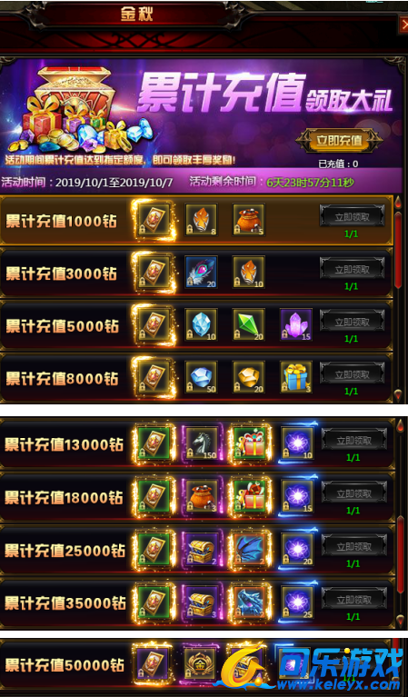 活动内容:玩家在活动时间内,累计充值达到一定钻石即可获得丰厚礼品!