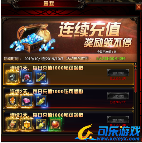 活动内容:活动时间内,玩家每日充值达到1000钻,即可获得丰厚奖励!