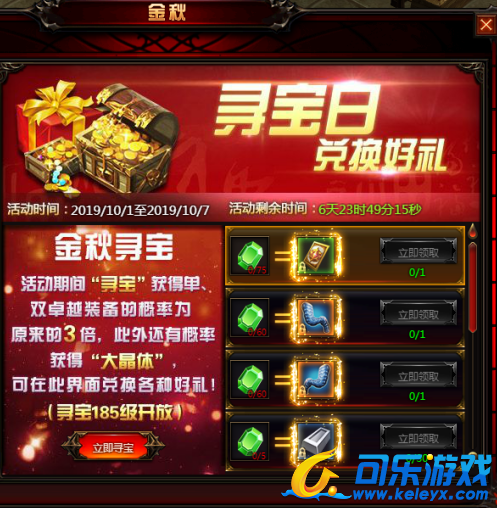 活动内容:在活动时间内,“寻宝”可获得单、双卓越装备的概率为原来的三倍,此外还有概率获得“大晶体”,大晶体可在金秋活动专属页面中兑换好礼!