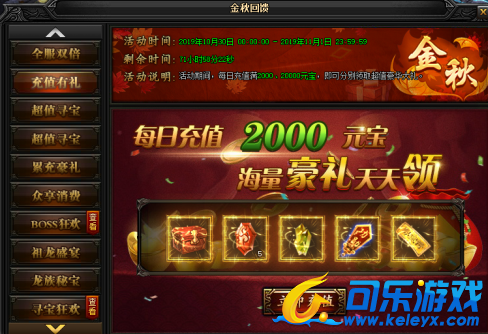 活动说明:活动期间,每日充值满2000、20000元宝!还能领取超值豪华大礼