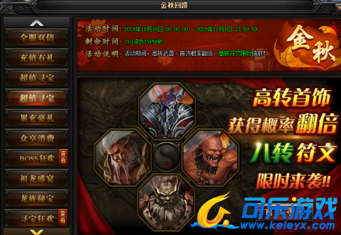 2,活动说明:活动期间,高转武器、首饰概率翻倍,高转符文限时抽取!