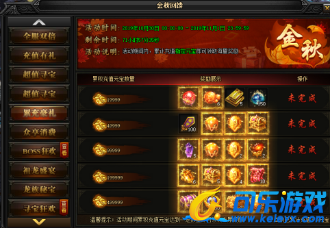 活动说明 : 活动期间内,累计充值指定元宝即可领取海量奖励