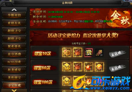 活动说明:活动期间,在龙族寻宝中,寻宝次数达指定次数,即可领取额外大礼。