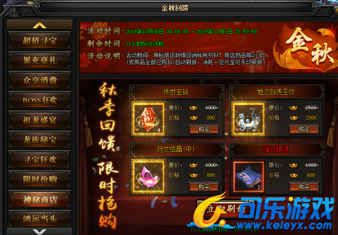 活动说明 : 活动期间,神秘商店倾情促销稀有材料!商店物品每2小时自动刷新(或全商品全部已购后),消耗一定元宝可手动刷新。
