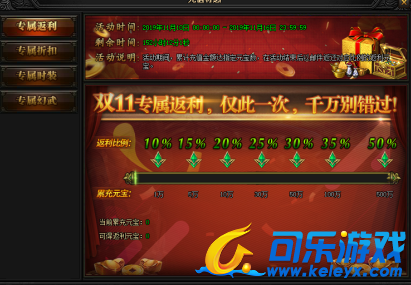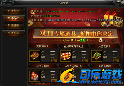 活动说明:活动期间,可随机获得专属折扣,最低仅1折,每充值10000元宝可获得1次随机折扣的机会。