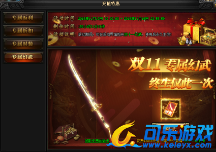 活动说明 : 活动期间内,可在活动界面购买双十一幻武,使用后永久生效!