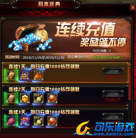 活动内容:活动时间内,玩家每日充值达到1000钻,即可获得丰厚奖励!