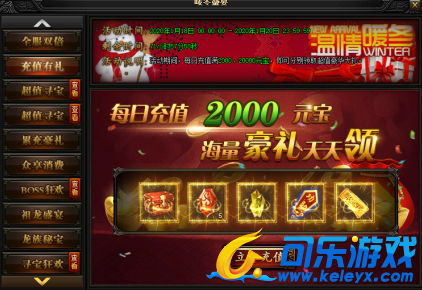 活动说明:活动期间,每日充值满2000、20000元宝!还能领取超值豪华大礼