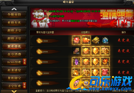 活动说明 : 活动期间内,累计充值指定元宝即可领取海量奖励