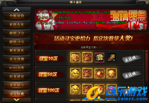 活动说明:活动期间,在龙族寻宝中,寻宝次数达指定次数,即可领取额外大礼。