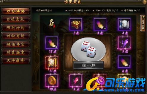 2. 活动期间内,玩家击杀boss可获得boss积分,boss积分数量达指定档次可免费投掷一次骰子,根据骰子点数可领取奖励。每日最多可获得三次