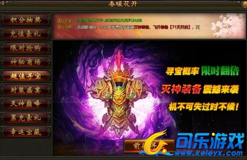 1. 活动期间,王之宝藏可抽取妖器装备!高级装备概率翻倍!活动限时3天,机不可失过时不候
