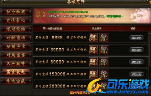 3. 有两档奖励可领取:2000钻石、20000钻石。每档都有丰厚豪礼免费领取。