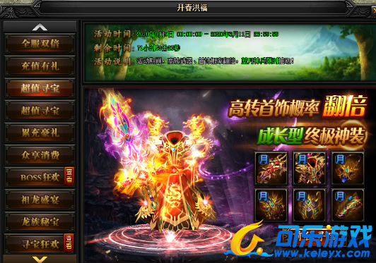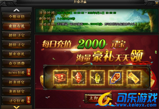 活动说明:活动期间,每日充值满2000、20000元宝!还能领取超值豪华大礼