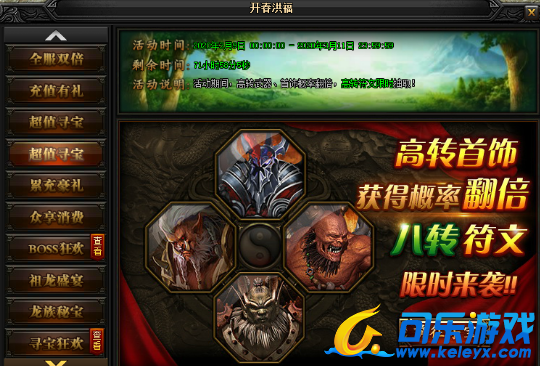 活动说明2:活动期间,高转武器、首饰概率翻倍,高转符文限时抽取!