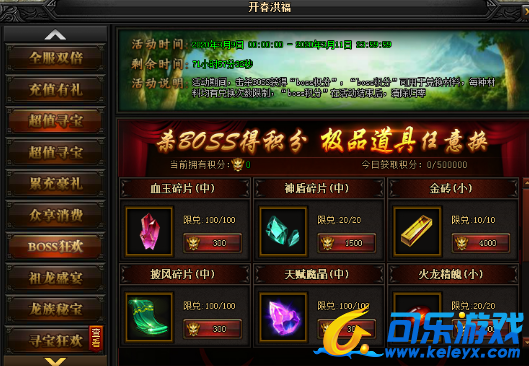 活动说明 : 活动期间内,击杀BOSS获得“boss积分”,“boss积分”可用于兑换材料,每种材料均有兑换次数限制,“boss积分”在活动结束后,清除归零