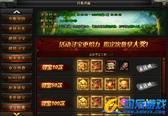 活动说明:活动期间,在龙族寻宝中,寻宝次数达指定次数,即可领取额外大礼。