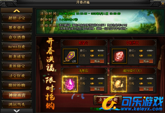 活动说明 : 活动期间,神秘商店倾情促销稀有材料!商店物品每2小时自动刷新(或全商品全部已购后),消耗一定元宝可手动刷新。