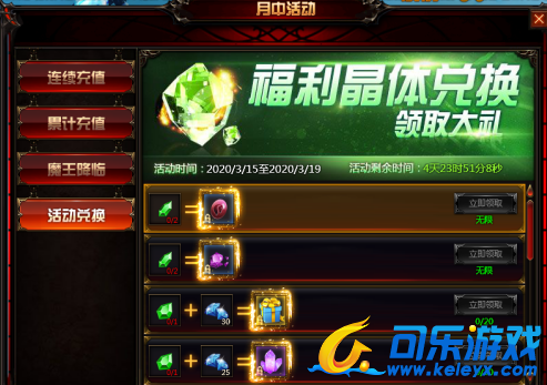 活动内容:玩家在日常挂机击杀小怪可获得小晶体,击杀野外BOSS、黄金BOSS可获得中晶体,使用不同晶体及钻石比例可兑换游戏中稀有道具,详情请根据游戏中活动兑换页面为准。