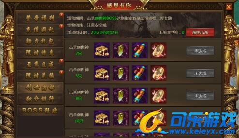 1.活动期间击杀指定数量的创世神即可获得奖励
