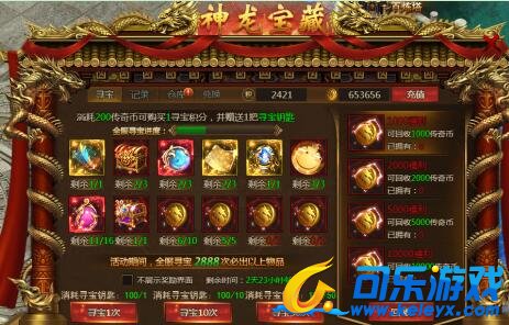 1.活动期间可以在神龙宝藏中抽取各种稀有材料和传奇币