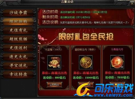 合服期间可以超低价格购买稀有商品