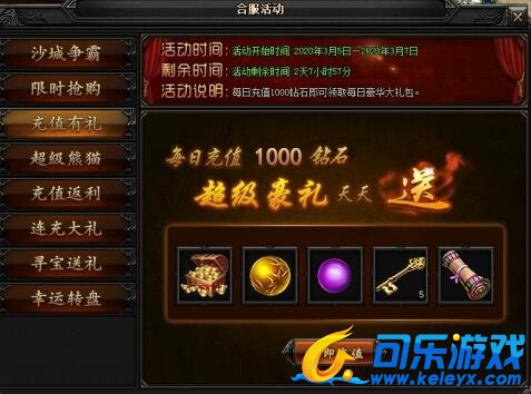 合服期间每日充值对应档位可领取一份超值大礼,连续3天达标还可以领取5品龙符的奖励
