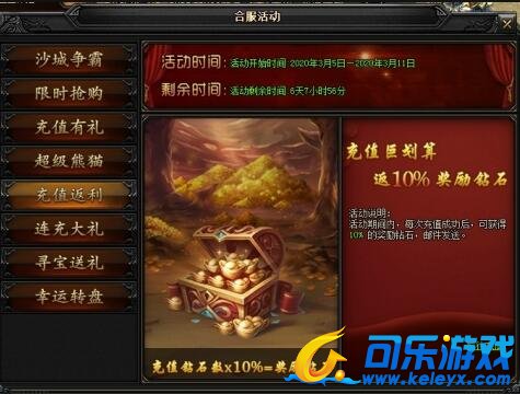 合服期间每充值一笔钻石即可获得10%钻石返利