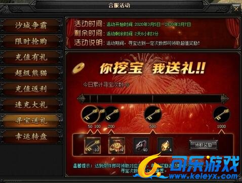 寻宝送礼,合服期间寻宝达到对应次数可领取一份丰厚奖励