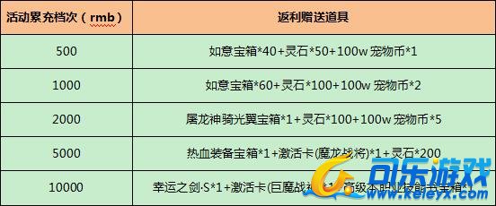 注:活动期间,每档充值奖励可累计领取,活动结束后统一申请发放,可与其他活动叠加;