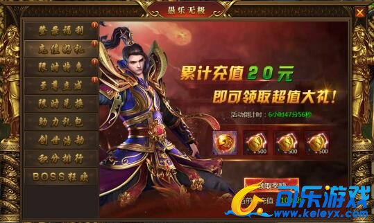 1.活动期间,玩家每日充值20、200、500元,均可领取超值大礼;