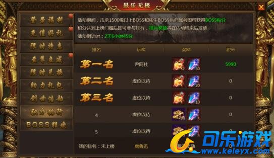 1.活动期间击杀1500级以上的boss和转生boss获得积分,活动结束后更加排行邮件发送奖励