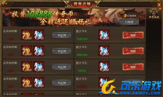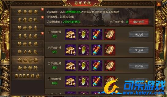 1.活动期间击杀指定数量的创世神即可获得奖励
