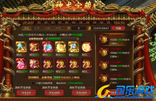 1.活动期间可以在神龙宝藏中抽取各种稀有道具、装备和传奇币