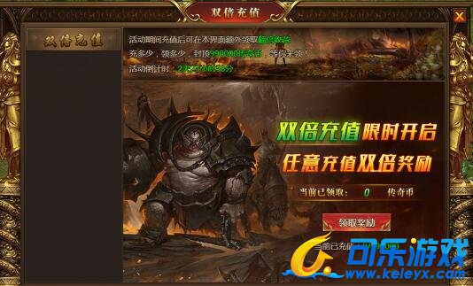 1.活动期间充值可在活动页面领取与充值金额等值的传奇币奖励
