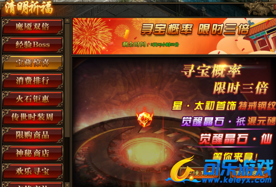 1.活动期间,玩家寻宝概率翻倍,极高几率获得星·太初首饰,传世灵器、传世灵甲,特戒钢纹,混元砂,传世灵器、传世灵甲,觉醒晶石·仙以及觉醒晶石·祇