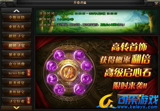 活动说明2:活动期间,高转武器、首饰概率翻倍,高级启心石限时抽取!