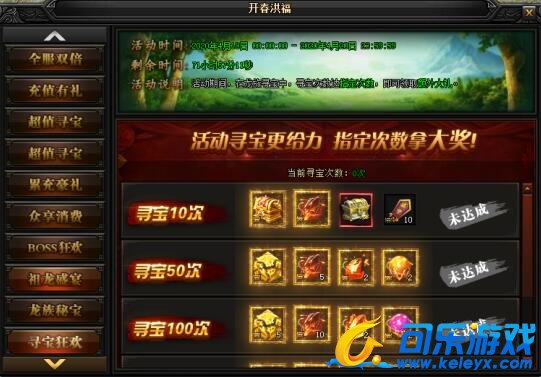 活动说明:活动期间,在龙族寻宝中,寻宝次数达指定次数,即可领取额外大礼。
