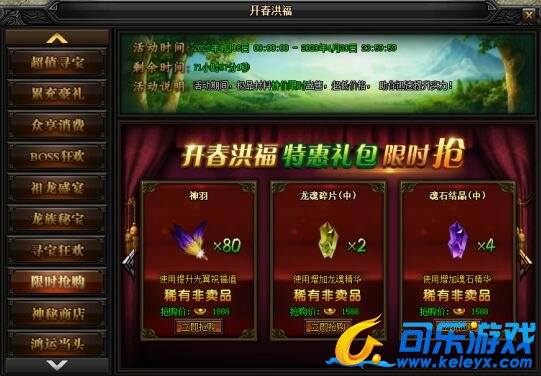 活动说明 : 活动期间,神秘商店倾情促销稀有材料!商店物品每2小时自动刷新(或全商品全部已购后),消耗一定元宝可手动刷新。