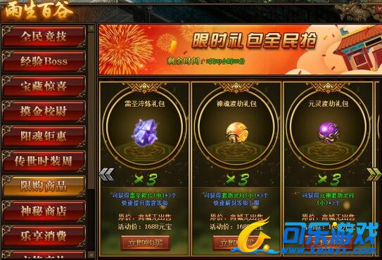 1.活动期间,玩家可在活动面板购买限购商品;(可翻页)