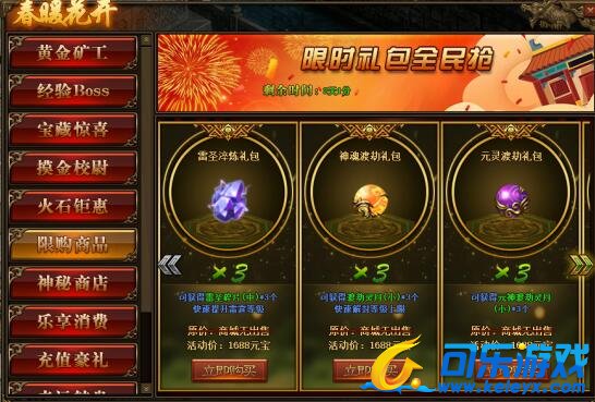 1.活动期间,玩家可在活动面板购买限购商品;(可翻页)