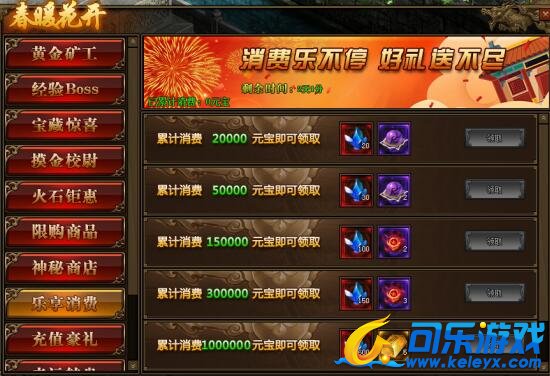1.活动期间,玩家累计消费满足要求,可以领取境界修为、本职业星石、传世灵戒等相应奖励;