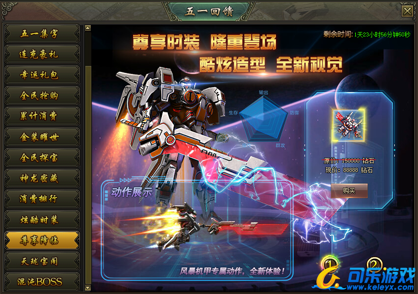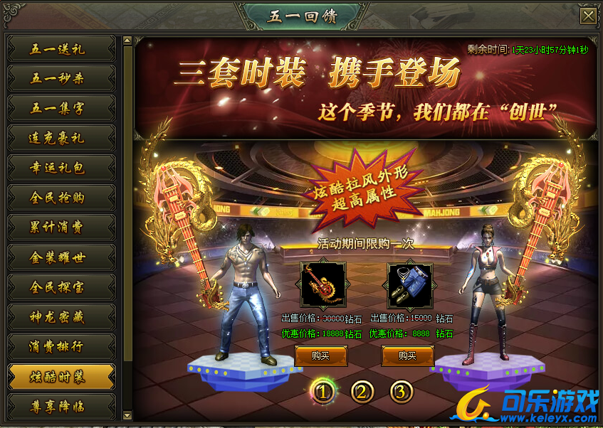 活动说明:活动期间,绝版时装限时出售,炫酷拉风外型、超高属性都在这里!