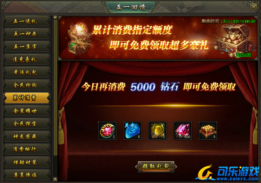 活动说明:活动期间,累计消费指定金额钻石即可领取超多豪礼