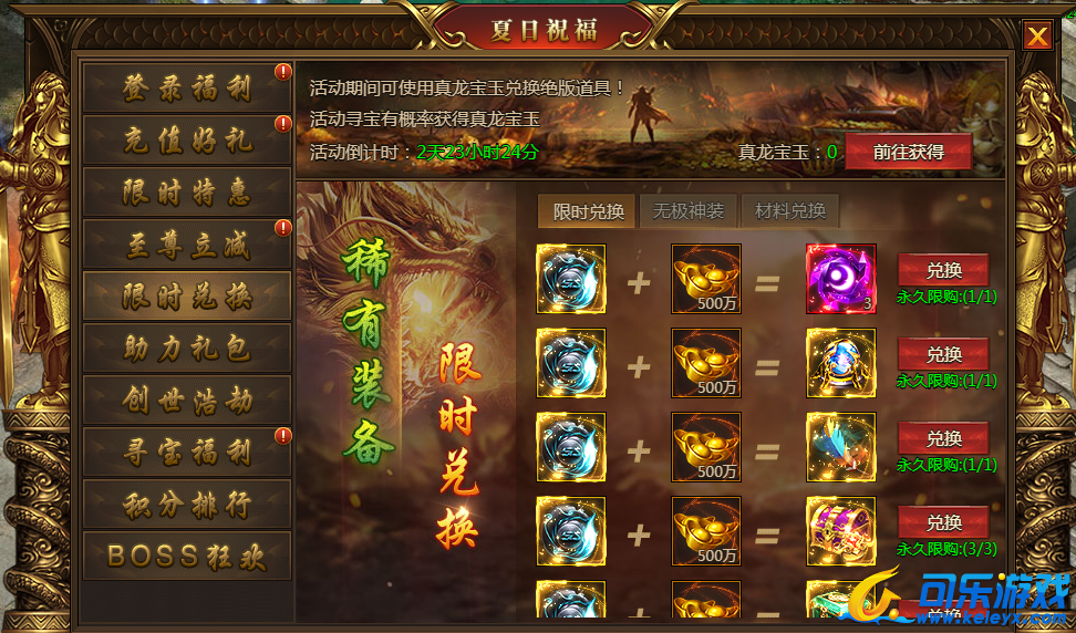 活动内容:活动期间可使用真龙宝玉兑换绝版道具