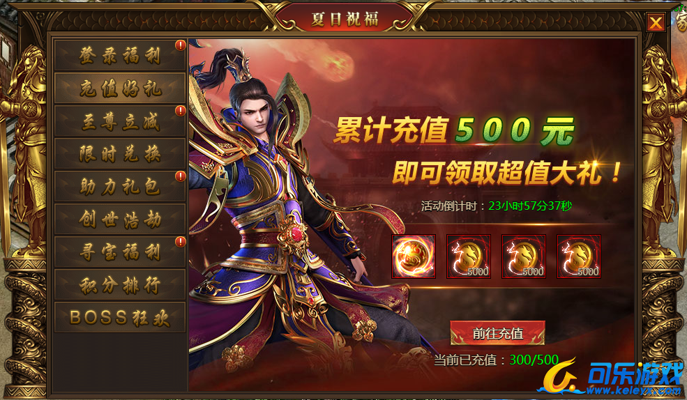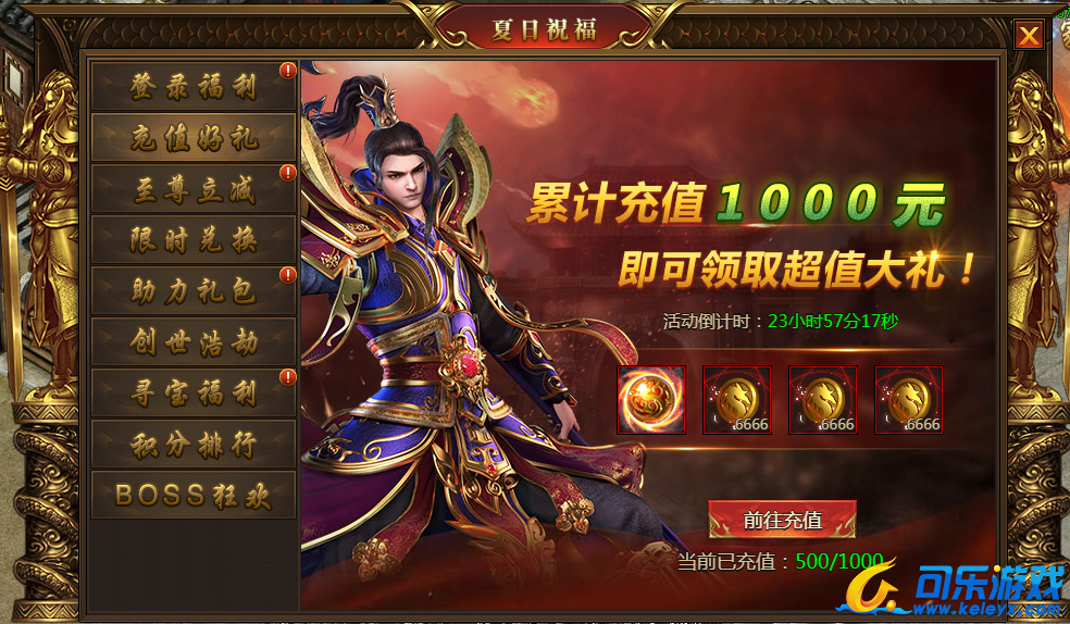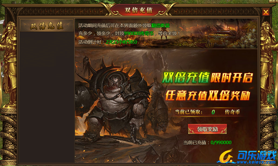 1.活动期间充值可在活动页面领取与充值金额等值的传奇币奖励