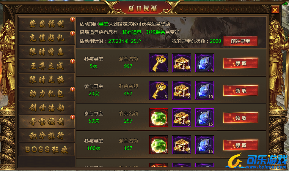 1.活动期间寻宝达到指定次数即可获得海量奖励